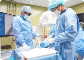 術前のエコー評価や麻酔から先輩医師に指導してもらい、手技を行なっています。1対1で丁寧に指導してもらい、終わった後はフィードバックをもらいます。透析バスキュラーアクセスに興味がある自分にとっては、非常に勉強になる時間です。